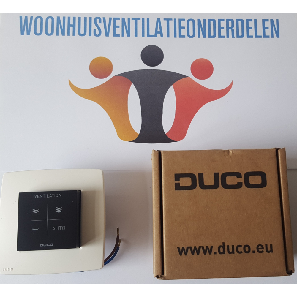 De schakelaar heeft drie verschillende ventilatiestanden, laag, midden en hoog en een auto stand. Bij indrukken van de Auto stand wordt er automatisch op basis van Vocht gestuurd. De drie-standen van de bediening kunt u handmatig indrukken en zijn dan altijd tijdelijk: 15 minuten voor de afvoer. Nadien gaat het systeem terug in ‘AUTO’ stand waardoor de CO2 meting weer leidend is.